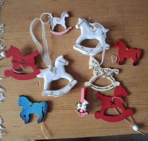 Jak widać pytania były łatwiejsze i trudniejsze, ale też wybór pytania ukrytego w cukierku był całkiem losowy, więc działała zasada „ryzyk-fizyk”. Jedni trafiali lepiej i odpowiadali szybko i pewnie, inni mieli problemy, ale jakoś ze stękaniem i delikatnym wsparciem, na który organizatorki spuszczały zasłony, dawali radę. Ze dwie – trzy osoby poddały się walkowerem. Zabawa była przednia, miło było odświeżyć sobie ważne fakty z naszej bogatej historii. Nagrodą w konkursie były koniki na choinkę, którą delikwent losowo wybierał sobie z torebki pełnej koników.